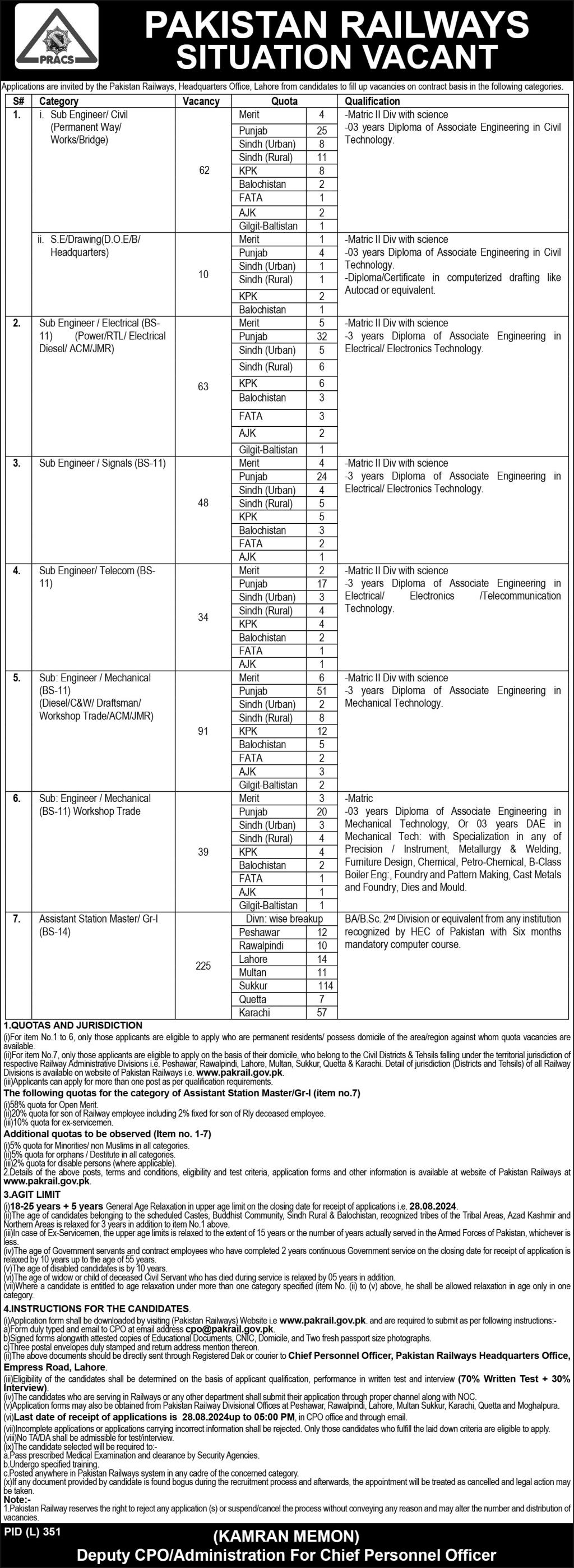 2. Details of the above posts, terms and conditions, eligibility and test criteria, application forms and other information is available at the website of Pakistan Railways at www.pakrail.gov.pk.