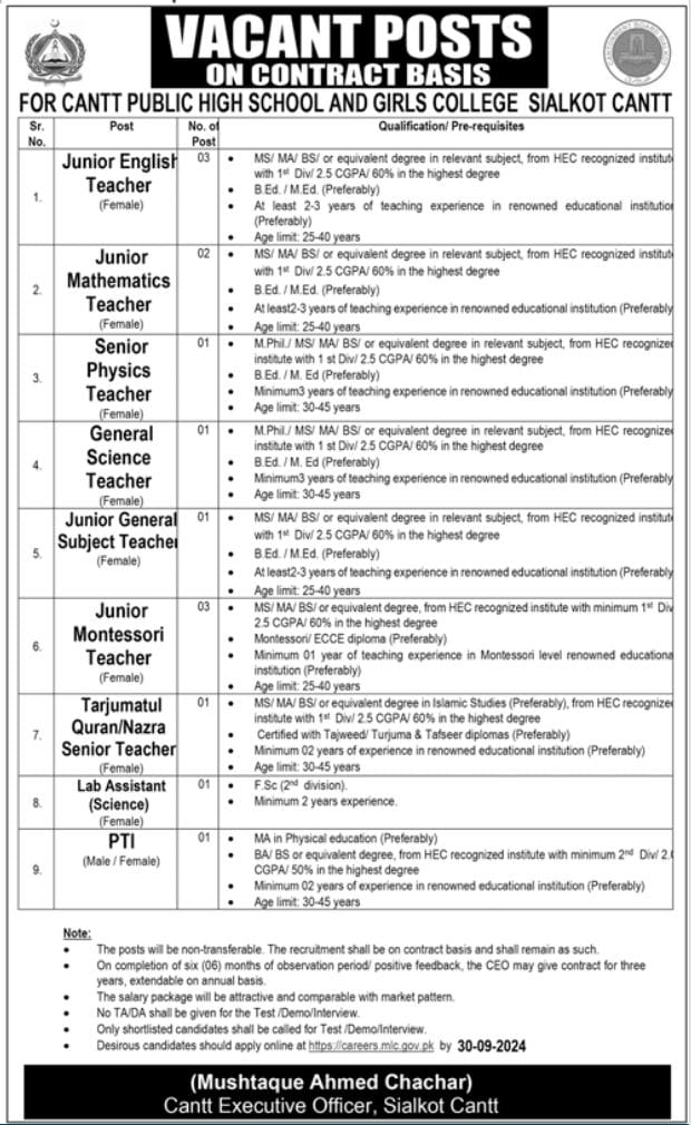 Desirous candidates should apply online at https://careers mic.gov.pk by 30-09-2024