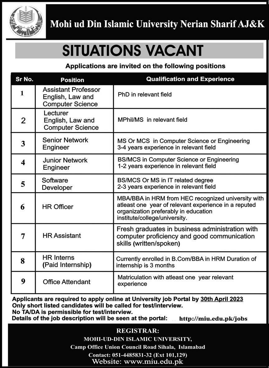 - Master in Computer science (at least 60% marks) from HEC recognized local or foreign university/ institution. However, Ph.D. in computer science from HEC recognized local or foreign university/ institution will be given preference.