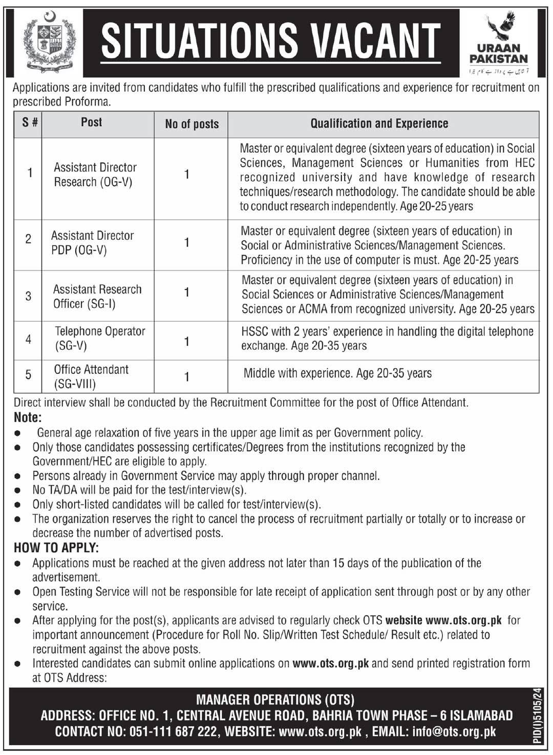 Interested candidates can submit online applications on www.ots.org.pk and send printed registration form at OTS Address