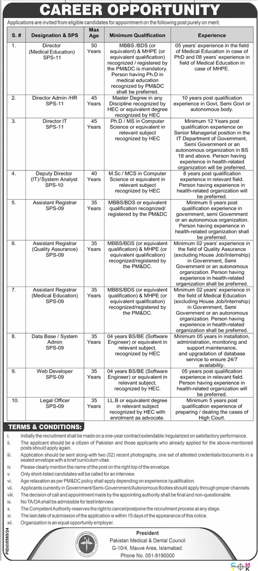 Pakistan Medical & Dental Council G-10/4, Mauve Area, Islamabad.