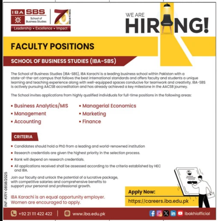 IBA Karachi is an equal-opportunity employer. Women are encouraged to apply.